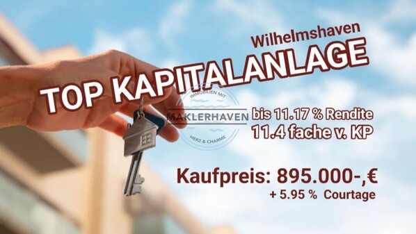 Rendite-Perle in Wilhelmshaven: zum 11,4-fachen mit Bruttomietrendite von fast 8,9% - 11,17 % mögl.